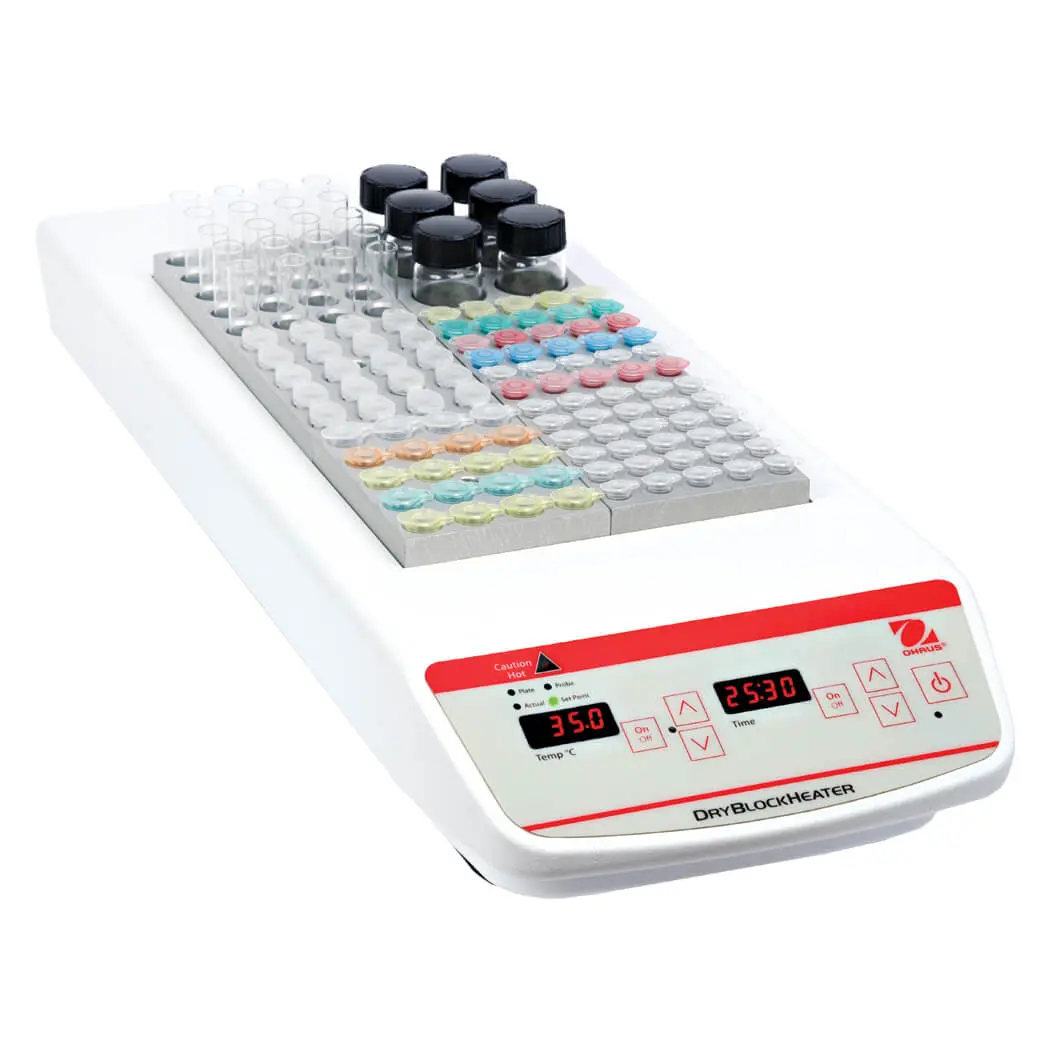 Multi-purpose Dry Block Heaters are ideal for applications that require temperature stability. The close tube-to-block contact enables maximum heat retention, resulting in efficient heating. High-wattage, constant-temp. analog models are an economical option, while digital models offer exceptional temp. uniformity & stability for applications that require repeatable results. Units hold optional interchangeable modular blocks with over 40 options.